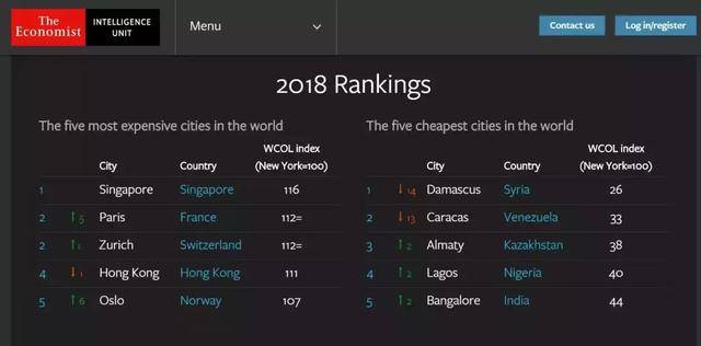这份报告涵盖全球97个国家133个城市,比较了160类产品和服务的400多项价格指标,包括食品、饮料、服装、家庭用品和个人护理用品等,可以说相当权威了......
