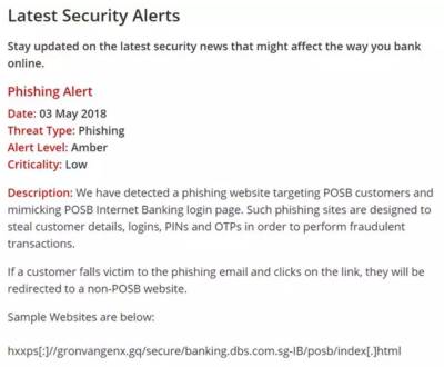 POSB的官网还提醒各位,为了保证账户安全,大家登陆网站的时候可以直接在浏览器中输入DBS或者POSB的URL。