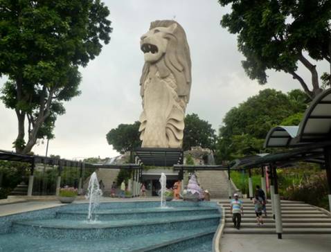 在新加坡的圣淘沙也屹立著一尊鱼尾狮雕像,被认为是一头雄狮,新加坡人称其为狮爸爸;