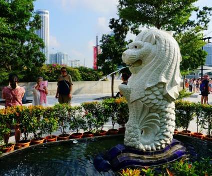 众所周知,在新加坡有一尊举世闻名的雕塑~鱼尾狮,高8米,重40吨,坐落于新加坡滨海湾鱼尾狮公园,它是新加坡的标志和象征。