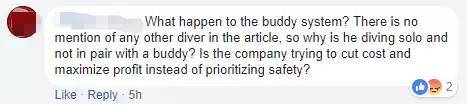 (为什么没有伙伴系统?文章中没有提到其他潜水员,所以他为什么独自潜水?是不是公司为了减少成本以增加利润,而不优先考虑安全性?)