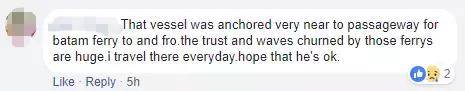 (那艘船停靠在巴淡渡轮来往的通道上,这些渡轮的浆搅动会带起巨大的波浪。我每天都会去那里。希望他没事。)