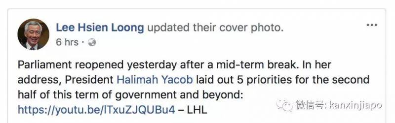 新加坡总理李显龙今天(5月8日)在Facebook为总统哈莉玛发文,表示哈莉玛总统昨晚的施政方针是由第四代领导班子一起起草的,鼓励接班团队为着共同的目标一起努力!