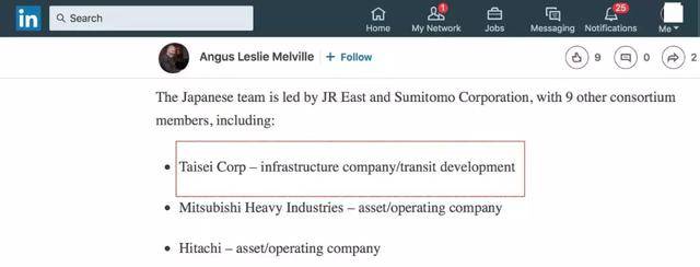 另外,众所周知,日本、中国、韩国等多方都在竞标新隆高铁的建设,我们在参与竞标的日本团队中,赫然看到了大成建设的身影......