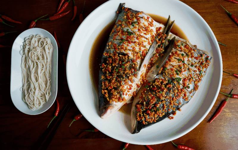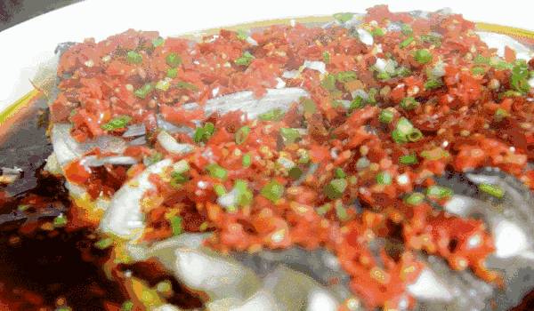 火辣辣的红剁椒覆蓋住白嫩的鱼头