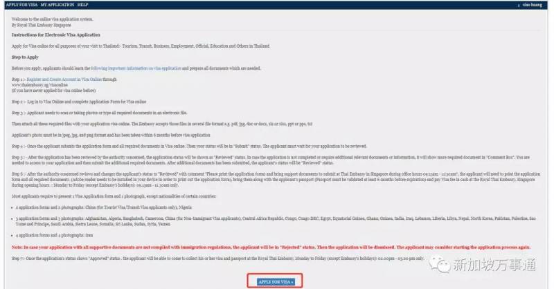 进入泰国大使馆官网签证办理中心http://visaonline.thaiembassy.sg/