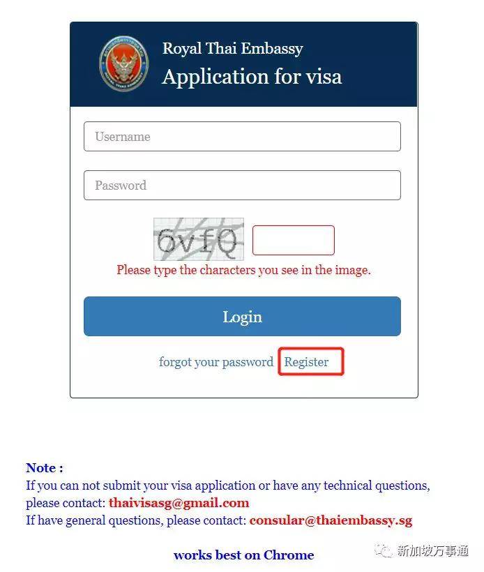 步骤四:再次进入http://visaonline.thaiembassy.sg/ 网站,填写激活的账户密码,就可以申请签证啦~