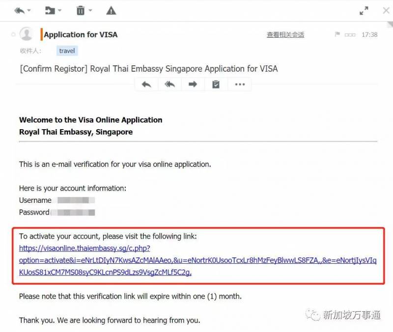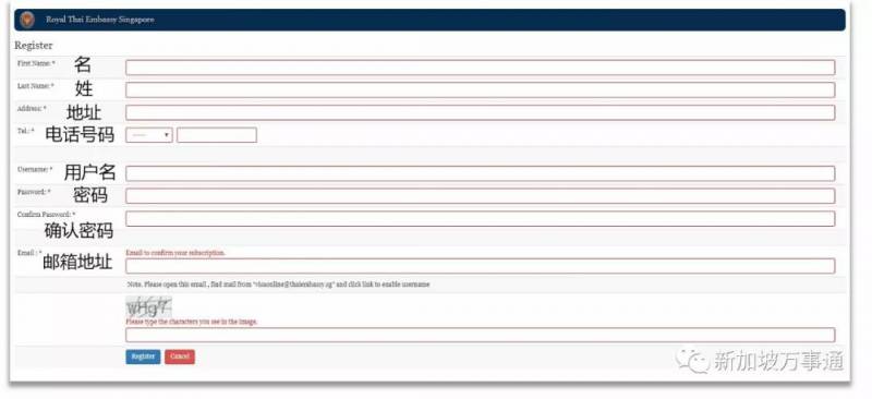 步骤二:申请账号密码,按照图中信息申请办理泰国签证的密码。
