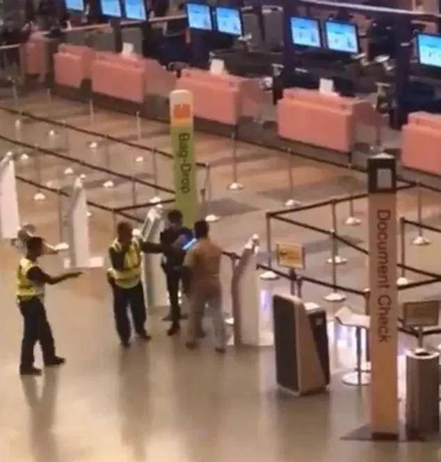 这名男子闹事的时候,周围有不少旁观者,但是大家都不敢上前劝阻,中年男子所引发的闹剧也惊动了警方和机场保安,他们赶到后,试图与这名闹事者沟通。