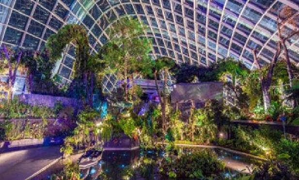 在滨海湾花园内体验下室内花园的乐趣。这座庞大植物园内的多样化气候环境可满足所有人的需求,从“花之穹顶”(Flower Dome)内的温和地中海气候到遍布蕨类植物的 “云之森林”(CloudForest)寒冷迷雾,差异化温度令人惊叹。