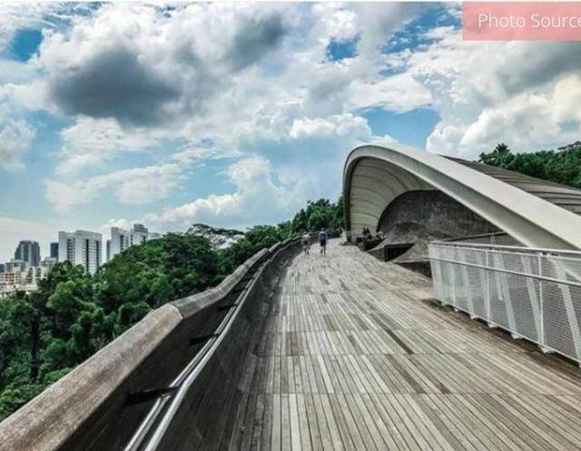 这座行人桥是新加坡最高的人行天桥,造型独特,别具创意。每逢周末会有很多的跑步爱好者在这里散步和跑步,这里更是成为情侣们谈情说爱的热门之地,在下午傍晚,你们可以在这里走一走,坐下来看看风景,可谓是约会圣地!
