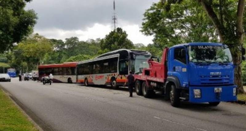 早上9点05分,一辆157号新捷运巴士在惹兰裕廊克基(Jalan Jurong Kechil)靠近旧裕廊路(Old Jurong Road)东的巴士站,撞上一辆SMRT巴士。