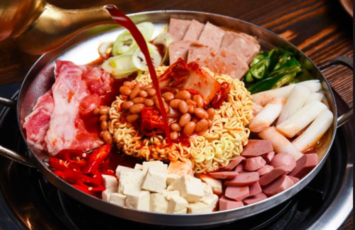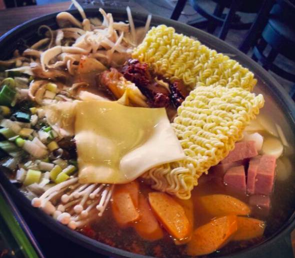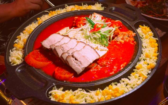这是一种类似于西式杂汤的韩式浓汤火锅