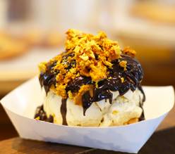 有人说早就厌倦了华夫饼上面一粒厚实的冰淇淋球
