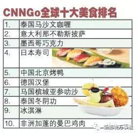 广告美国有线新闻网络(CNN)旗下的旅游网站CNNGo为帮助游客制定旅行计划,列出全球50大美食排行榜!
