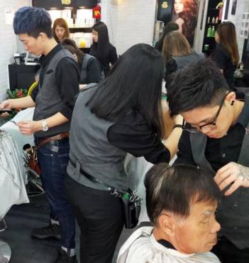“我和合伙人对通过生意做慈善,藉以回馈社会的理念相同。因此开始了每天上午10时至11时,分别在三家店替65岁以上的建国一代免费剪发的服务。”