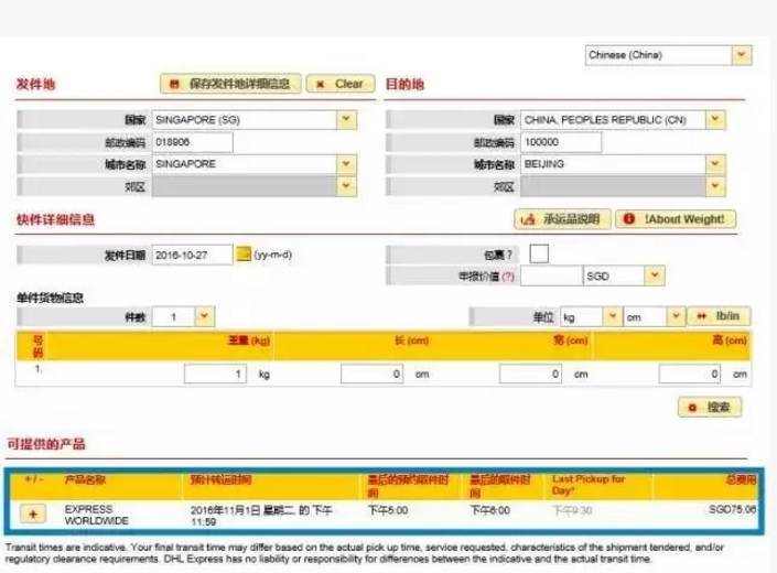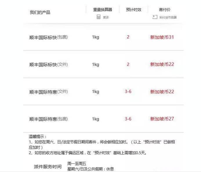 选择最快的 express,去中国只要 1-2 天,一公斤以内的文件是 50 新币,包裹是 82 新币,两公斤就要收费高达 119 新币。