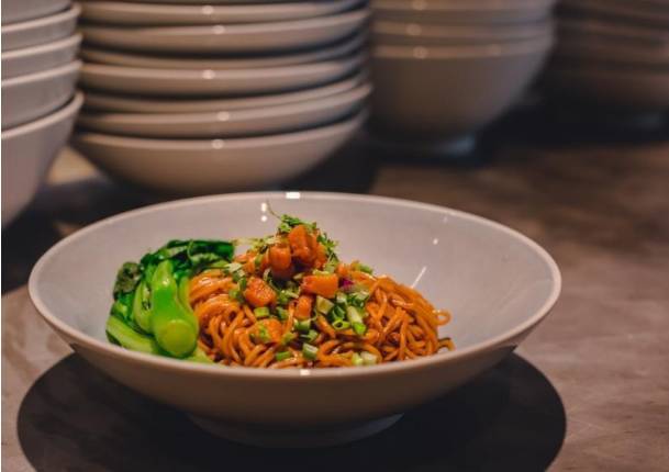 这道面采用陈永康独家 XO 酱和黄面秘方,搭配猪油渣天衣无缝,与麻辣猪油渣一起吃更是锦上添花,停不了口。由于猪油渣和 XO 酱都属重口味食材,陈永康说,花了一个月才调出两者的黄金比例。