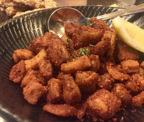 回新加坡后,陈永康把在昆明的灵感延伸为自己餐馆的两道新菜肴:麻辣猪油渣和 XO 酱猪油渣捞面。