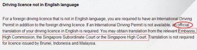 我们以外国人在新加坡转驾照为例,SPF官方网站指出,必须要官方的翻译认证,比如说大使馆等。
