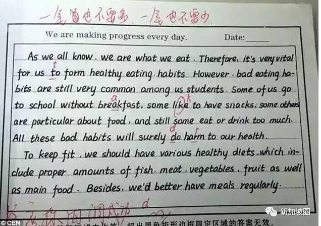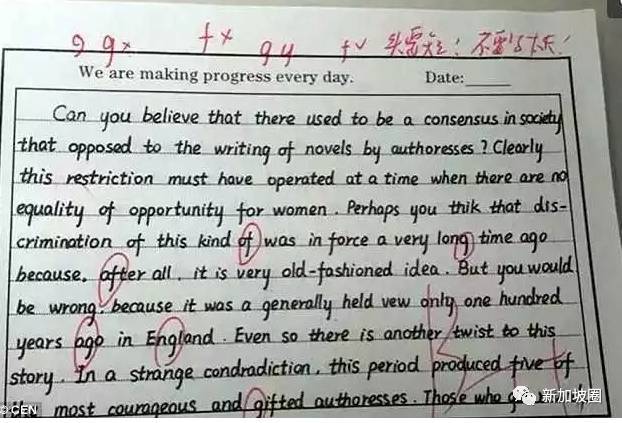 这是当年在国内疯传的某某学校中学学生的手写英语作文照片。上面的评语如何不知道,小圈儿就多说一句——