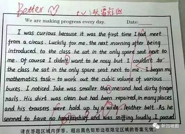 评价就是——“虽然学生的语法需要提高,但他们的笔迹如此整洁,让人很容易误认为是计算机打印的…”