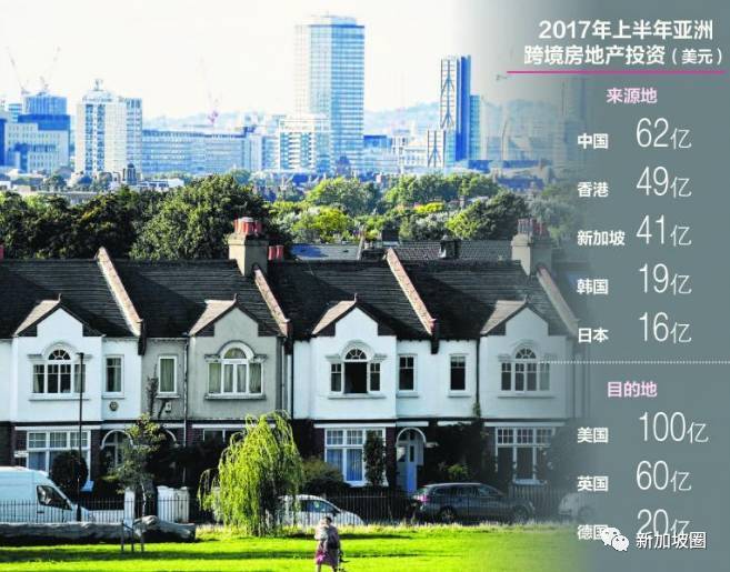2017年上半年中国在房地产市场的跨境投资额为62亿美元(85亿新元),仅次于德国和英国,成为房地产领域世界第三大跨境资本来源国。