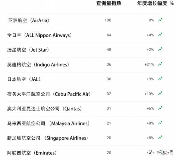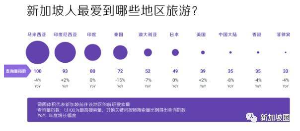 在新加坡人的航班搜索榜上,马来西亚与印尼稳居榜首,其次是印度、泰国、澳大利亚等国家。