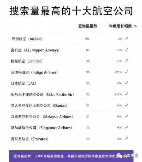 换个方式思考,也许新加坡人对于新航已经相对熟悉,若要搜索新航机票,已经无需问谷歌,而是直接查询新航网站,所以在搜索引擎上的搜索量也相应减少。总的来说,新加坡人对于各家航空公司的接受程度相当高!果然是最爱旅行的国家,连对航空公司的选择也非常国际化呢。
