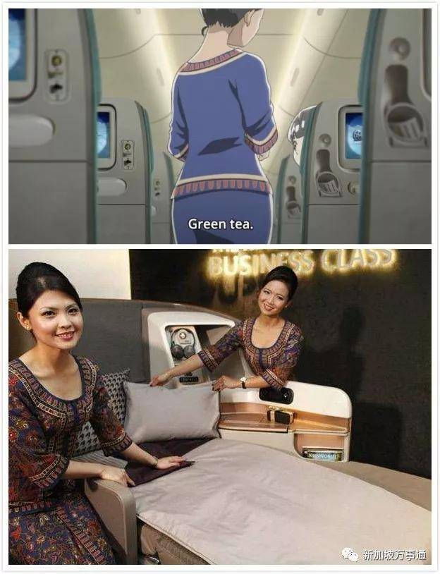 四个女生一起坐飞机来新加坡旅游,在飞机上,空姐的制服配色跟新加坡航空的空姐相似度达80%!小伙伴们请看对比图: