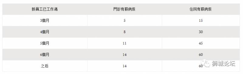 如果你是新雇员,可根据以下服务及工作时间获得病假:
