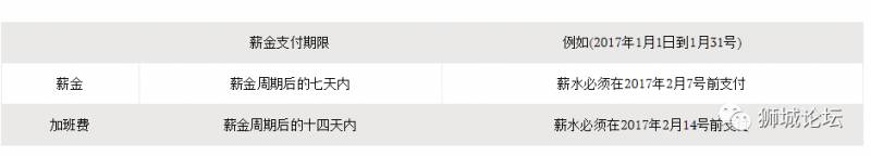 雇主必须根据以下时间表,每月至少支付一次工资及加班费给你: