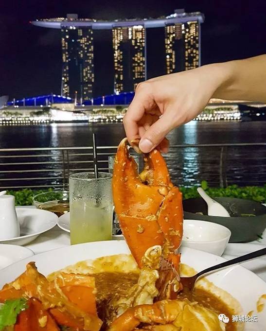 除了螃蟹好吃,这里的风景更是一绝!坐在餐厅户外观景区,河对岸就是金沙酒店,一抬头就能看到鱼尾狮,夜景无敌美,只是一定要提前预订,不然排队要很久(还有可能吃不上)!