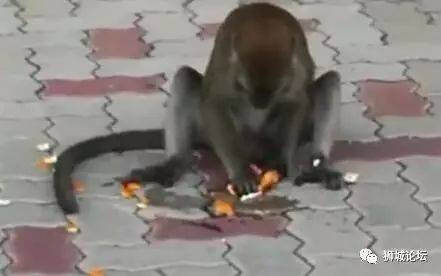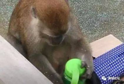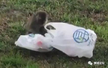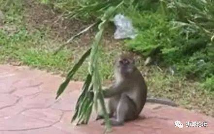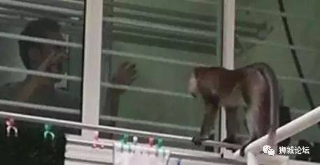 在这附近一带住的居民说,猴爷身手敏捷,两三下功夫就爬到5楼去,而且经常看到有人拿塑料袋经过的时候,它就跑过去抢~甚至还有小男孩差点就被它抓伤了。