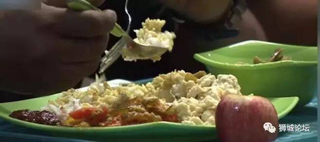 不同的饮食习惯,食物还细分成中餐、西餐、清真餐, 清真区用餐专用绿色餐具。