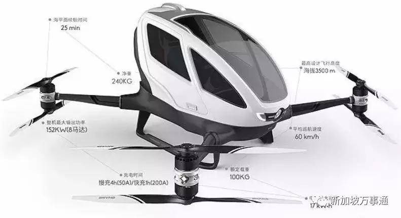 “亿航184”,有8个螺旋桨、4支外伸机臂,最重要的是,它只需要1名乘客,因为它是一部无人驾驶飞机!与“共享汽车”相比,“共享飞机”甚至不用考驾照!
