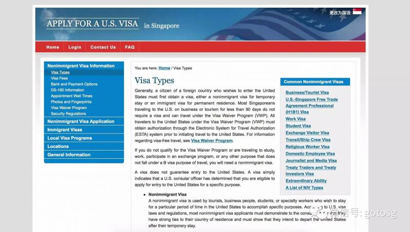 1.访问美国驻新加坡大使馆官方网站,了解关于签证的说明
