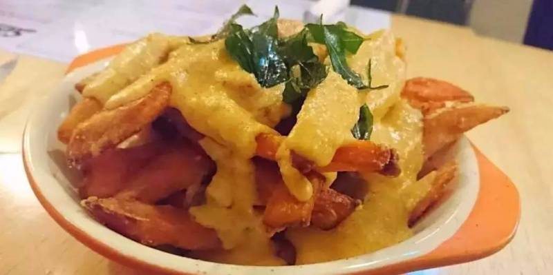 偷偷告诉你,这里还有一款跟华夫饼没关系但好吃的咋舌的咸蛋黄地瓜条(S$12),切的厚厚的地瓜条炸的香软,淋上浓浓的蛋黄酱再撒上炒的脆脆的咖喱叶,香!