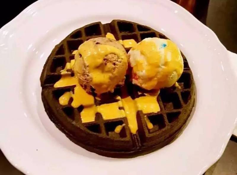 Waffle华夫饼,也有人叫它松饼。在坡县的普及程度就好比天朝的煎饼果子。唯一的区别是从摊上挪进店里,加鸡蛋的改成单球或双球冰淇淋,葱花改成蜂蜜脆块,豪华版加香肠的改为炸鸡。