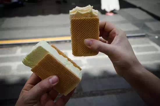如果你吃不惯榴梿水果,你也可以尝尝用榴梿制成的冰淇淋三明治,新加坡商贩中心的街角处就有卖。