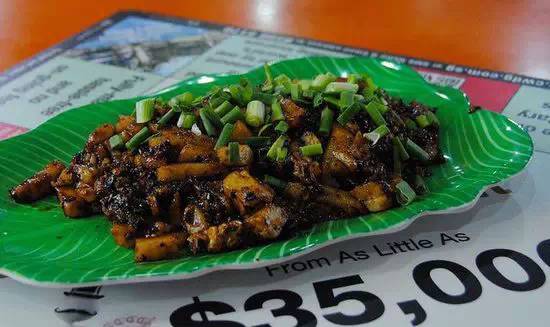 新加坡的萝卜糕上没有传统萝卜糕的奶油乳酪糖霜,它是由碎萝卜做成的,再加上炒鸡蛋、大蒜和各种香料,传统的酱汁有黑色的酸甜酱或者也可以不加酱。