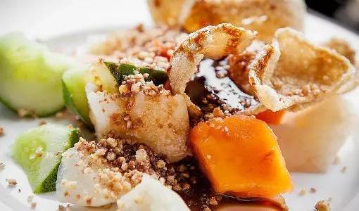 这道菜虽然看起来普通,不过口感非常不错,这也形成了新加坡菜的一道亮丽风景。罗惹口味酸甜,酱料与新鲜蔬果恰到好处地融合在一起。色泽黑黝黝的虾膏酱尽管其貌不扬,却味道鲜美,让人无法抗拒。