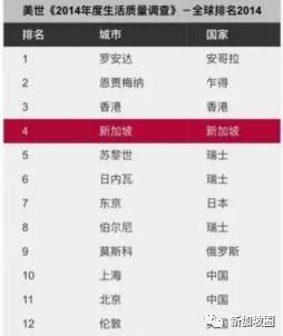 根据 2014 年美世生活质量调查全球城市排名,新加坡拥有最佳的环境、设备和基础设施,使人民能够享受高质量的生活。这是因为新加坡有稳定的政治形势、世界级的交通和医疗保健系统以及多样化的娱乐活动,所以也让新加坡变为一个大家人人都想来这黄金地赚钱的一个国家.