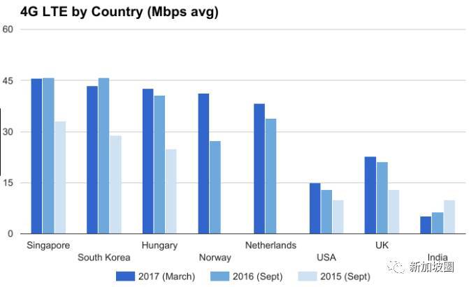 调查显示:新加坡的4G LTE流动通信网络的网速,排名全球第一。英国网络研究机构OpenSignal根据全球安卓手机用户,在去年10月到12月之间所提供的数据统计:新加坡的4G LTE网络,平均网速达到每秒46兆比特,比排名第二的新西兰,快了约8兆比特。覆蓋率方面,新加坡LTE网络的平均覆蓋率达百分之83,排名全球第6.