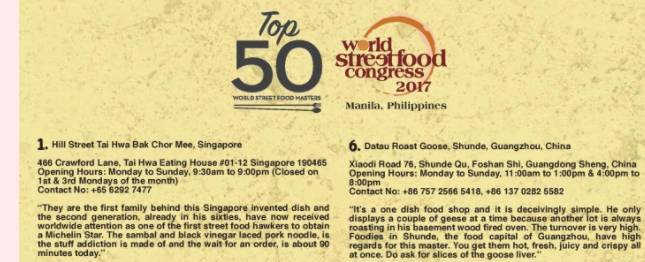 2017年最新的世界街头小吃新鲜出炉,拔得头筹的又是一家新加坡小贩!不过这次,拿第一的并不是出名的“了凡油鸡饭”,而是另一家著名小贩“喜街大华猪肉粿条面”!
