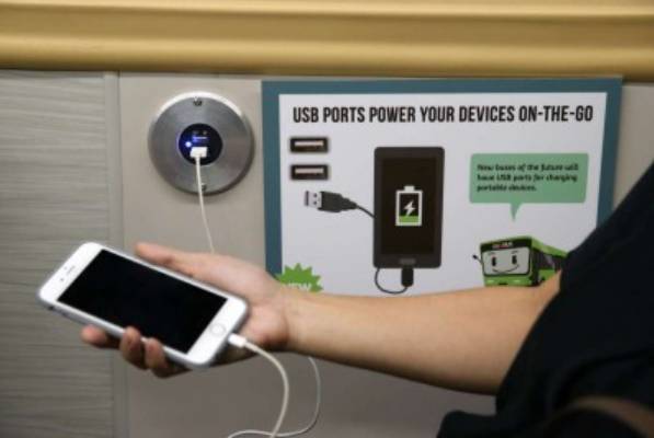 巴士上装置USB充电埠~ 出门再也不用怕手机没电了!现在有这项服务的巴士分别是:61号、67号、963号、969号和985号。