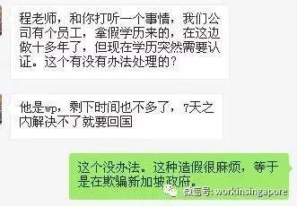 借这个事情,就学历的事情跟大家说一说,近几年,持有大专以上学历申请工作签证者,都需要做学信网的认证,但在以前是不需要的,所以,很多人钻了这个空子,办了个假的大学学历,可假的终归是假的,会有露馅的一天,现在需要提供学信网认证,提供不出来的,七天后就会被遣返回国。目前在新加坡的如果当年用的假的大学学历申请,如果跟老板关系好,建议取消准证,然后用中专毕业证重新申请签证,这样会比较踏实。但如果跟老板关系一般,还是默默祈祷不被查到吧。