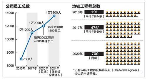 到时,SMRT的整体员工人数预计增至1万2000人,比2013年的约7000人增加超过七成。