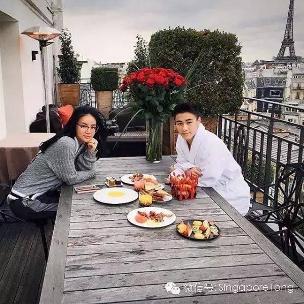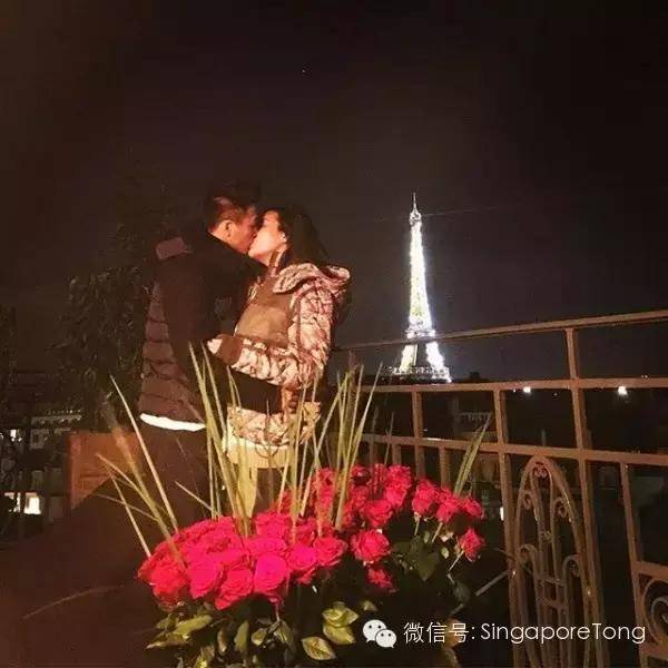 两人还一起去巴黎,巴黎埃菲尔铁塔做陪衬,超大束玫瑰花烘托温馨浪漫,深情一吻,好生让人羡慕!