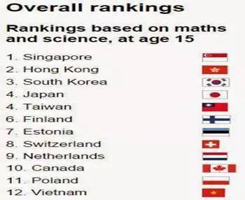 全球最大规模的教育排行榜由经济合作与发展组织(OECD)发表一项最新教育素质全球排名,报告根据76个国家15岁学生的数学和科学测验成绩综合统计而出,结果你猜?当然!新加坡是No1!远超日本、欧美等教育大国,稳居第一位!
